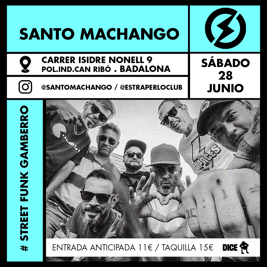 πππππ ππππππππ : Referente de la escena underground barcelonesa, una mescolanza de estilos donde predomina el #FUNK , #ROCK y #HIPHOP de la dΓ©cada de los #90s , todo pasado por un filtro que da a Santo Machango un sonido ΓΊnico y propio, una banda con un directo que no deja a nadie indiferente.