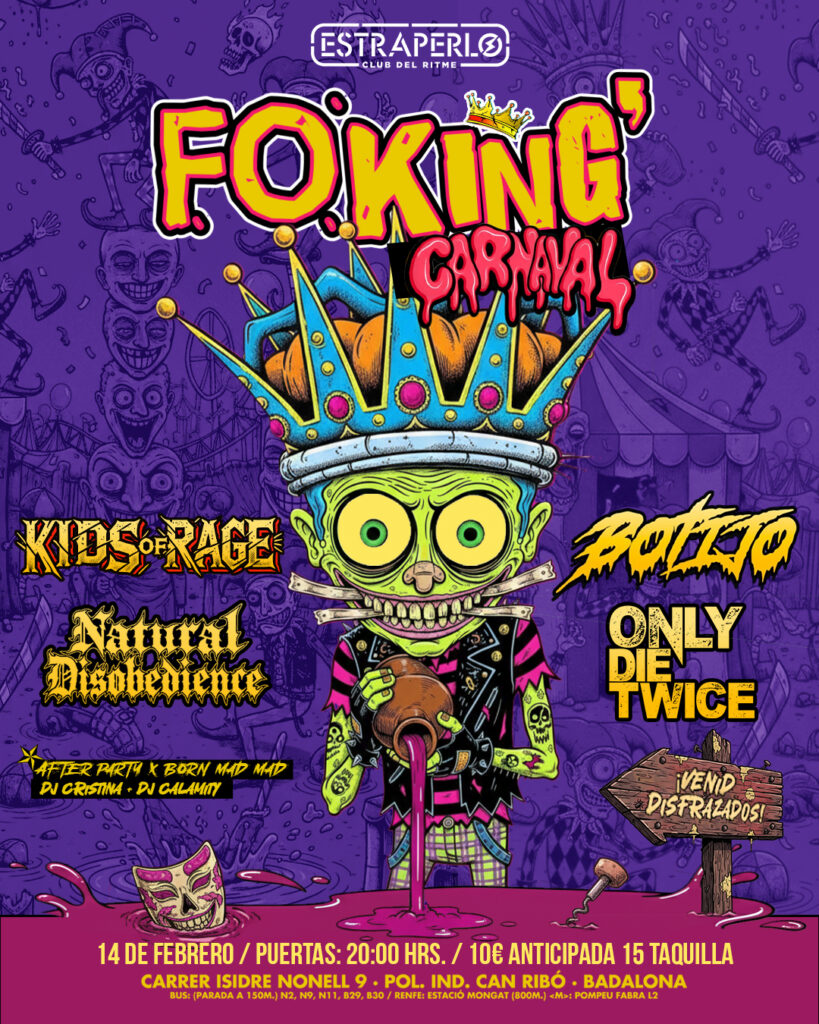 “Kids Of Rage llevan más de una década defendiendo su hardcore punk directo, intenso y con gusto por la melodía. Ritmos contundentes, letras cargadas de rabia cotidiana y una energía pensada para el mosh, los coros y la conexión real con el público. Un directo sin concesiones, donde la emoción y la actitud van de la mano.”