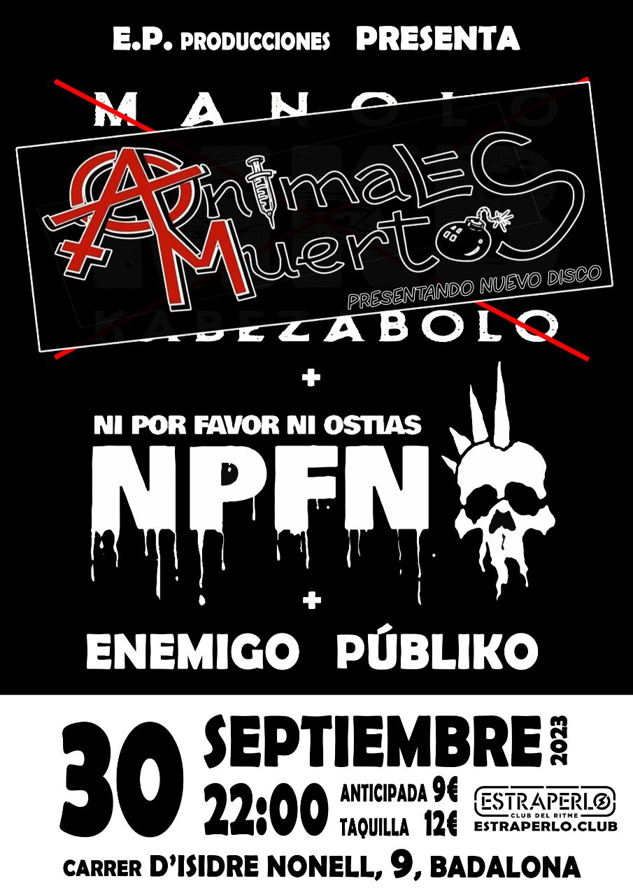 πŸ“…DIS.30.SETEMBRE : HERE’S JOHNNY Presenta ANIMALES MUERTOS + NPFN + ENEMIGO PÚBLICO en concert!