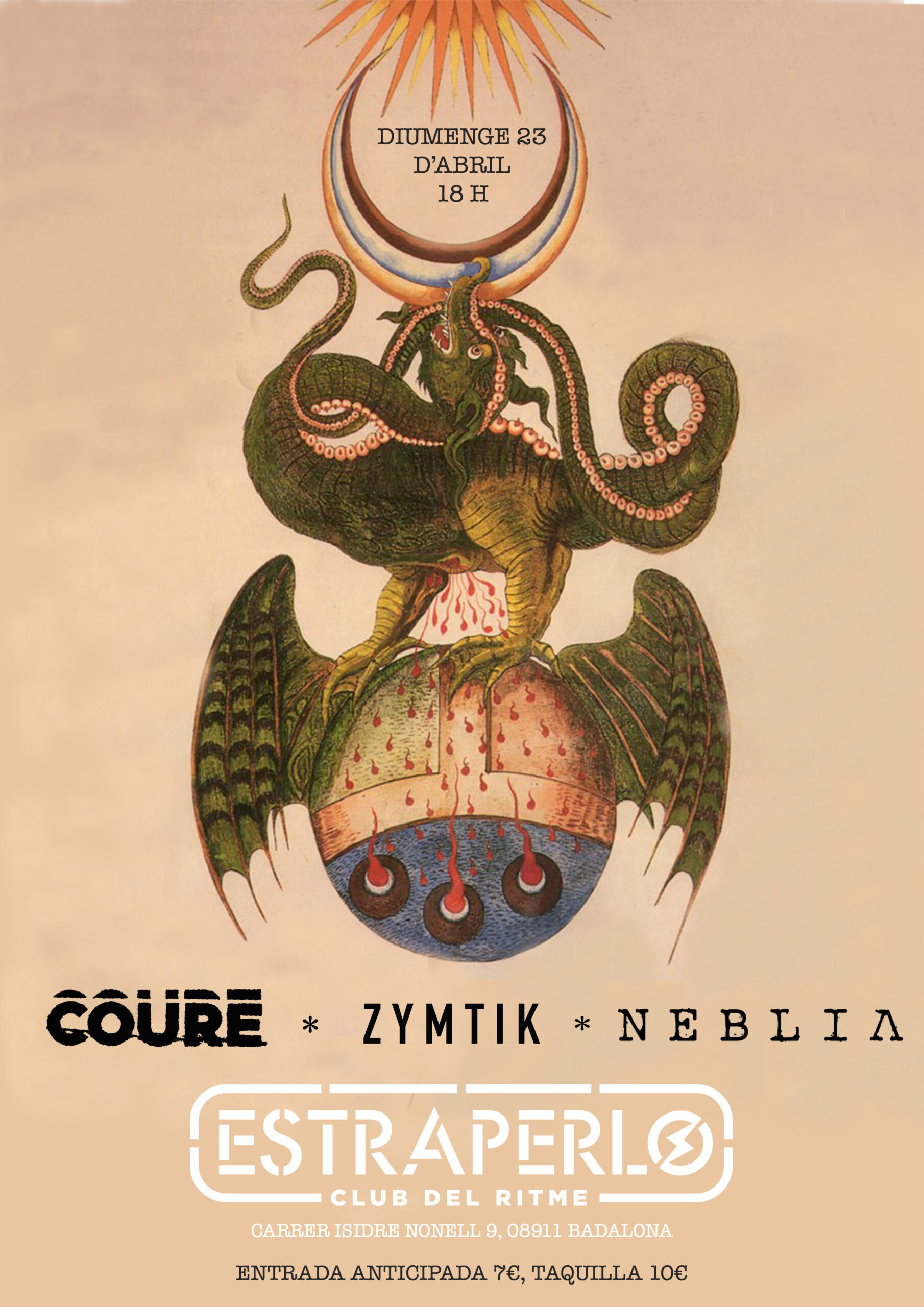 📆 DIU.23.ABRIL : COURE + ZYMTIK + NEBLIA en concert!