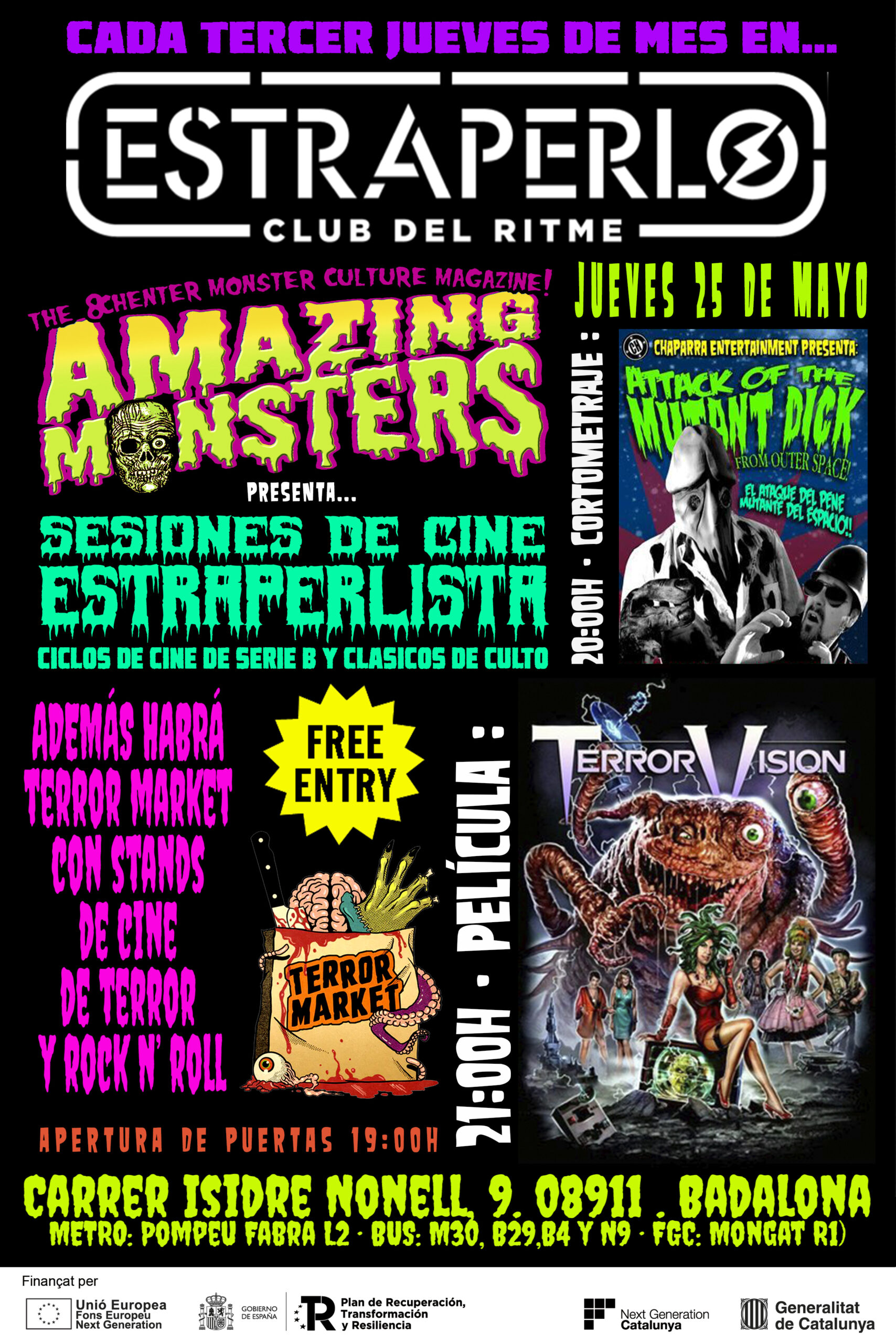📆JUE.𝟐5.MAYO : 𝐀𝐌𝐀𝐙𝐈𝐍𝐆 𝐌𝐎𝐍𝐒𝐓𝐄𝐑𝐒 Presenta ⚡️ 𝐒𝐄𝐒𝐈𝐎𝐍𝐄𝐒 𝐃𝐄 𝐂𝐈𝐍𝐄 𝐄𝐒𝐓𝐑𝐀𝐏𝐄𝐑𝐋𝐈𝐒𝐓𝐀 + 𝐓𝐄𝐑𝐑𝐎𝐑 𝐌𝐀𝐑𝐊𝐄𝐓 con 𝐬𝐭𝐚𝐧𝐝𝐬 𝐝𝐞 𝐜𝐢𝐧𝐞 𝐝𝐞 𝐭𝐞𝐫𝐫𝐨𝐫 & 𝐑𝐨𝐜𝐤’𝐍’𝐑𝐨𝐥𝐥 ⚡️ FREE ENTRY